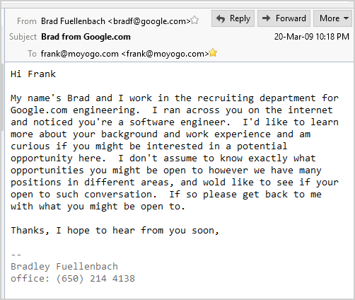 A few years after Vit Brunner strangled Moyo Go Studio to death, Google offered me a job interview: