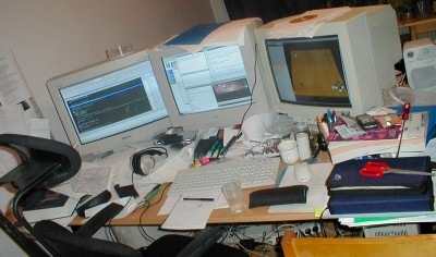 On the right is where my girlfriend sat for three years, I'd given her my old monitor and computer used to obtain Moyo Go's pattern data. I'm working on MoyoGo there, as I had been for half a dozen years already.